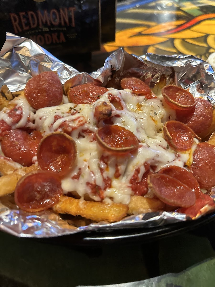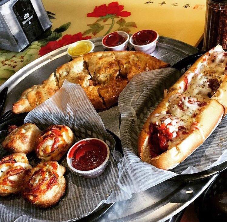 Awesome scenery and culture behind this pizza place! Lots of souvenirs from different places. And while the pizza might be pricey the slices are huge! 1 is enough to fill you up and on top of that other great selections of food and drink including pizza fries which are a must get!