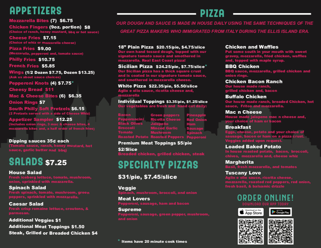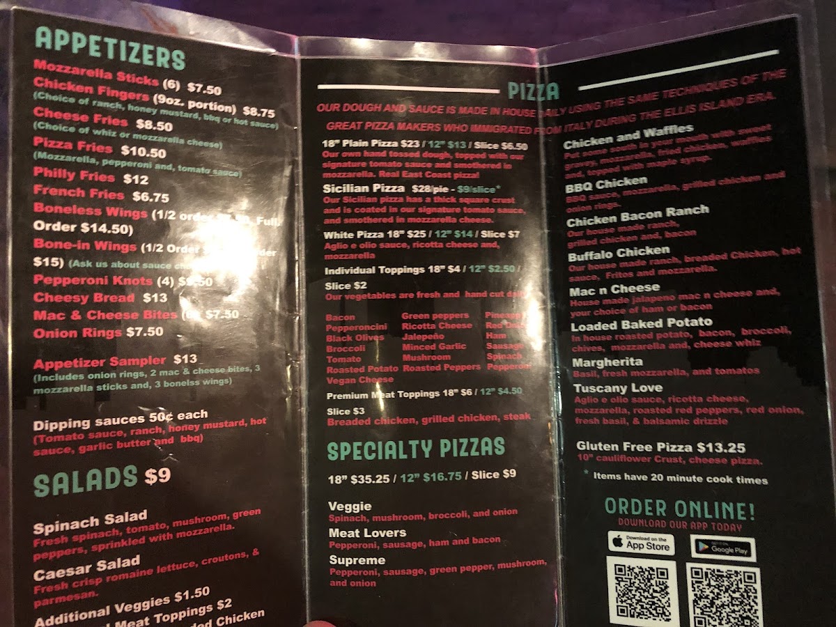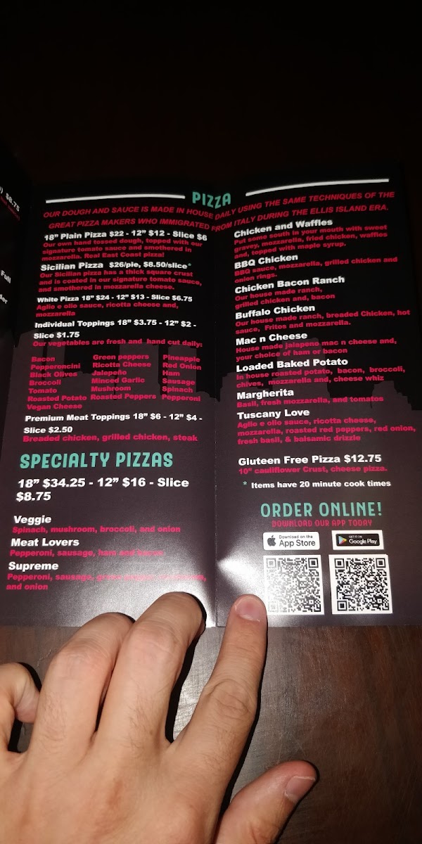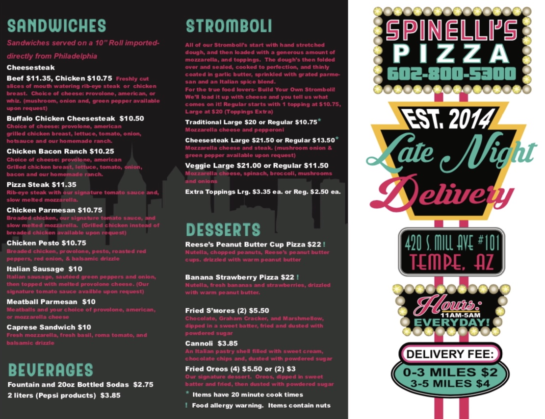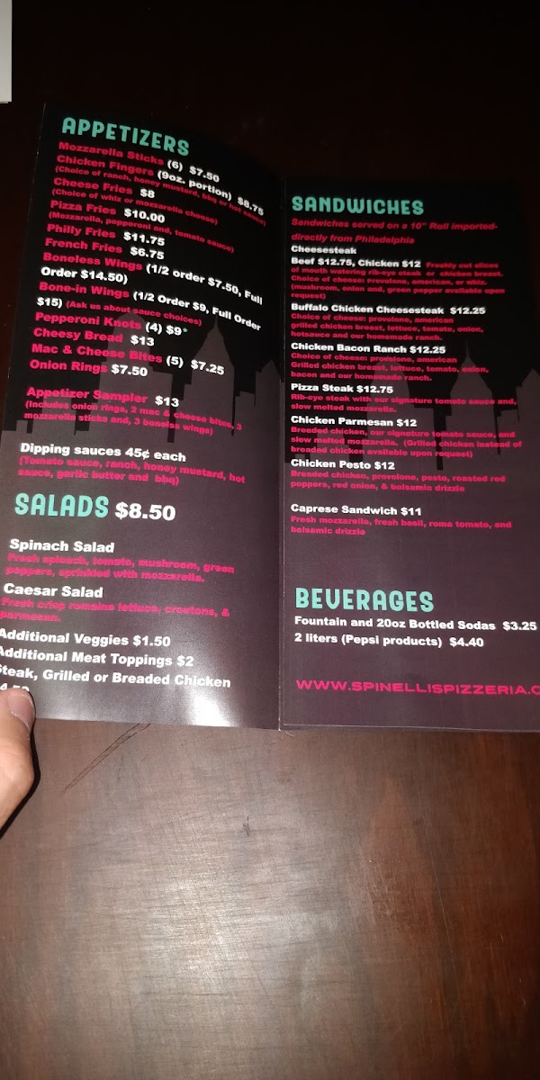 Spinelli's Pizza offers a straightforward and inviting menu that fits well with its lively, casual atmosphere. The menu leans on familiar comfort foods with an emphasis on satisfying, hand-held options perfect for sharing or enjoying solo after a night out or during a laid-back meal with friends.